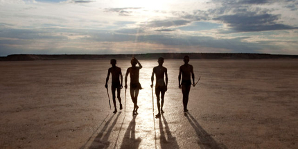 As I watch, hunter N!abi wriggles into a sandy burrow fringed with scrubby grass that belongs to a porcupine. At five foot eight, and slender with it, N!abi isn’t huge but he’s still a lot bigger than the den’s spiky owner. The hole is barely wide enough to contain him as he wriggles in, slowly widening the entrance. He disappears into the darkness, spear in hand, leaving only a pair of battered Converse clad feet above ground. Then even they vanish. We stand and wait. Eventually he re-emerges empty handed, brushing sand off his shoulders and shaking his head ruefully. For the Ju/'hoansi San of //nhoq’ma, there’s no porcupine supper tonight.