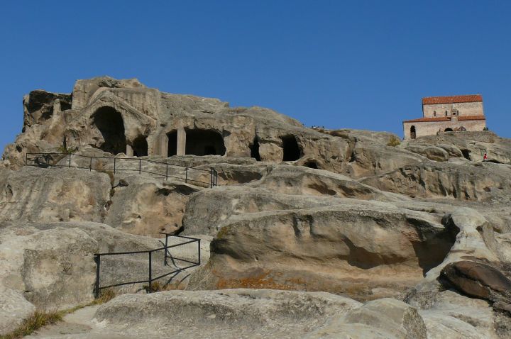 Everyone has heard about Joseph Stalin but not many people know that he was Georgian, born in Gori – the city just 1 hour away from Tbilisi. Its inhabitants are still proud of their most famous man, the main avenue holds his name, the Stalin museum (including the house he was born in) is in Gori and until 2010 a big statue of USSR leader was standing proudly in the very center. Gori was badly damaged in Georgian-Russian war in 2008 but it’s still interesting city to visit it, even if just for few moments on the way to/fromUplistsikhe. Just 10kms east from Gori the impressive and once enormous cave town can be found, located on the bank of Mtkvari river. It was founed around 1000 BC and used to be one of the biggest and oldest settlements in the Caucasus area. It served as the lively and important town until 1240 when it was destroyed by Mongols. Now the town is in ruins but it’s extremely interesting to wander around, thinking what was there all these centuries ago. Couple of public buildings are still there: a church, the theatre of the pharmacy being few of them.