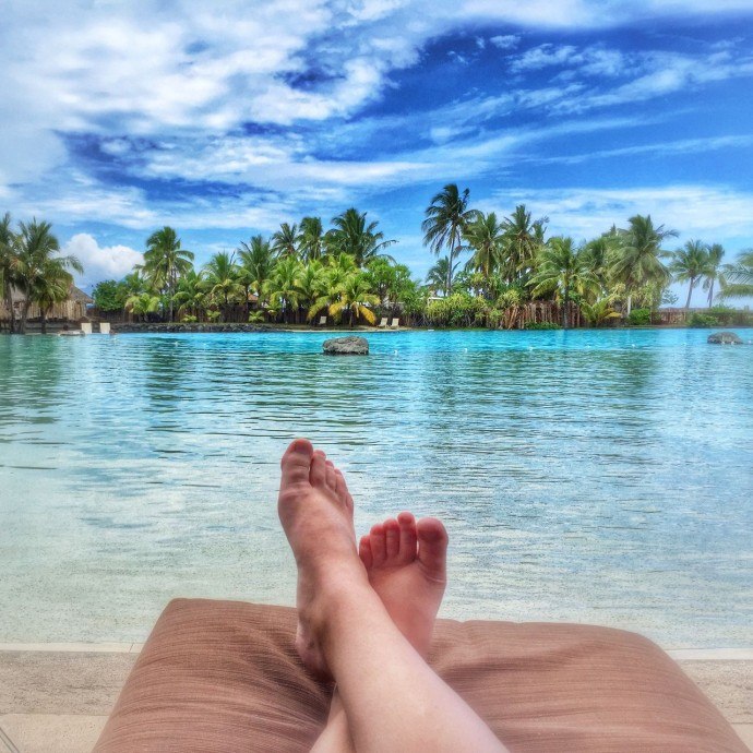 Here’s a look at some of the highlights from my brief stop in Tahiti, from the island’s mountainous interior (seriously, it just screams Jurassic Park, don’t you think??) to some colorful flora to the views from my hotel’s luxurious pool: