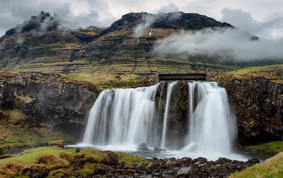 This is a small, but well-situated waterfall in the north of the Snæfellsnes peninsula. It stands just next to the famous Kirkjufell mountain that was behind me when I took that picture. The most famous point of view is actually on the other side of the fall and shows the water in the foreground and the mountain in the background. The weather was pretty bad when I got there; although I was hoping for a gorgeous sunset shot, I ended up with those dramatic clouds packed around the mountains. This is Iceland.