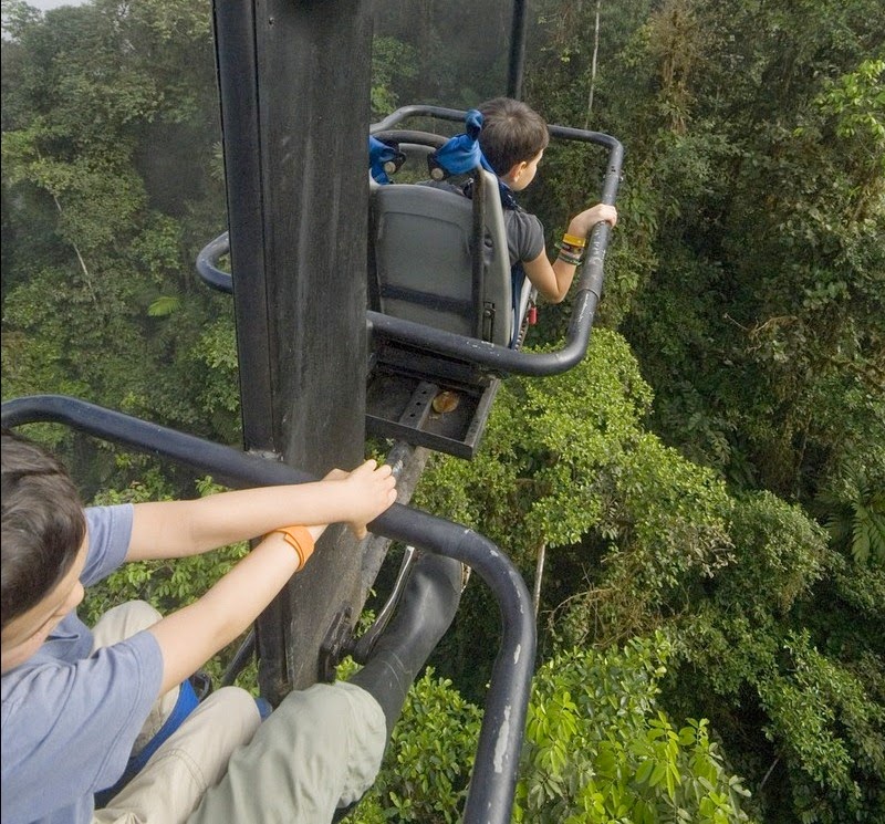 The Sky Bike at Mashpi Lodge is similar to the Sky Cycle – a pedal-powered roller coaster located in Washuzan Highland Amusement Park in Okayama city in Japan.